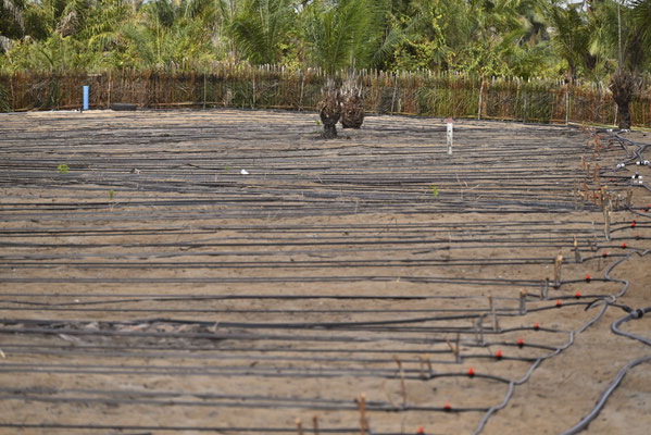 - En phase d'installation, nous disposons d'un potager qui accueillera différents types de légumes et légumineuses sur une superficie d'un hectare avec irrigation goutte à goutte pour garantir une production constante toute l'année, même pendant la saison sèche.