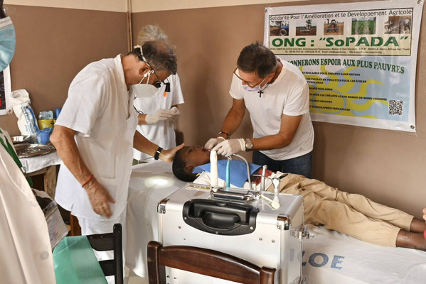 Cette année également, l'ONG SoPADA (Organisation Non Gouvernementale) - qui opère au BÉNIN - a demandé au Dr Corradi de reprendre son activité de volontariat dentaire dans deux Dispensaires de Santé, dont un au sud du pays - à OUIDAH - géré par des Sœurs. de la Congrégation africaine « Notre Dame des Apôtres » – et un au centre-nord du Bénin, à PENESSOULOU, dans la commune de BASSILA, un petit hôpital rural géré par l'État. L'entreprise d'agriculture durable (Solidarité Pour l'Amélioration et le Développement Agricole) est également basée à Penessoulou, qui a également donné son nom à l'ONG qui mène des activités sociales et humanitaires.