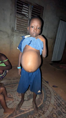 L'histoire de notre « petit » Thierry s'est bien terminée. Je vous en parlais plus tôt cette année. Ce garçon, qui a maintenant 14 ans, a très peu grandi à cause d'une maladie génétique du sang (la drépanocytose), assez fréquente chez les personnes noires. Thierry a séché quelques années d'école à cause du harcèlement quotidien de ses camarades à cause de son ventre proéminent. De plus, cette maladie a entraîné une hypertrophie de la rate, grosse comme une pastèque. Cela se reflétait non seulement dans son apparence physique, mais aussi lors d'une échographie que nous lui avons fait passer ce printemps, ce qui nous a obligés à programmer une ablation de la rate. Mais un problème n'arrive jamais seul. La maladie elle-même entraîne une diminution du nombre de globules rouges et nécessite donc des transfusions périodiques. Il a un groupe sanguin assez rare : B négatif. Ici, avec un peu de chance, nous trouvons une poche, mais pour l'opération, il en a fallu au moins quatre. Pour réaliser l'opération, il aurait fallu rétablir une numération globulaire correcte, et en tout cas, pas moins de huit. C'est pourquoi, outre les nombreuses visites préopératoires et divers examens, nous avons dû attendre fin août, lorsque les conditions minimales pour l'opération ont été réunies. Sa tante, enceinte, s'est occupée de lui avec beaucoup de dévouement, l'accompagnant lors des visites médicales et préopératoires. La SOPADA a financé tous les soins nécessaires et l'opération, qui a eu lieu le jeudi 28 août. Nous étions présents à sa sortie du bloc opératoire. Avant de le voir, on nous a remis sa rate dans un seau ! « C'est à toi », nous a-t-on dit.