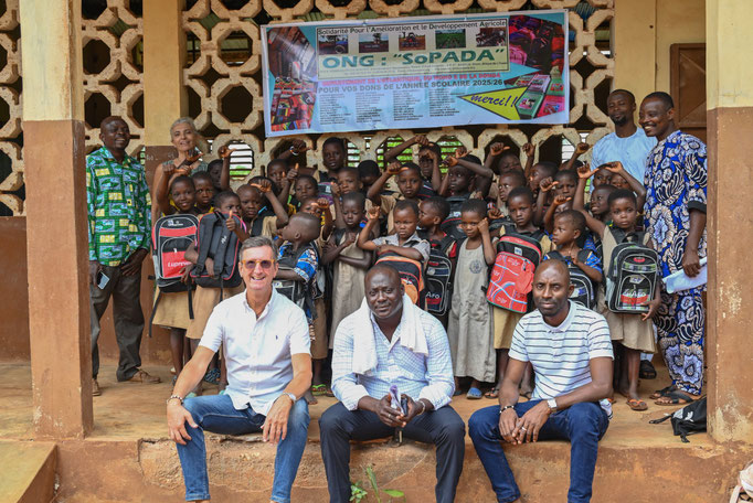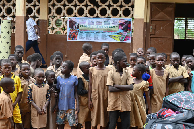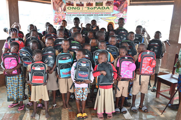 Une nouvelle cérémonie de remise de fournitures scolaires a eu lieu ce matin pour les enfants les plus défavorisés du district de Djegbadji. Les écoles concernées sont celles de Djiondji, AIDO, Mekó, Djegbadji et Degué. Nous avons identifié 44 enfants qui n'auraient pas pu être scolarisés pour l'année scolaire 2025/26.