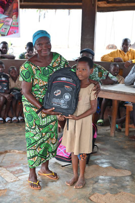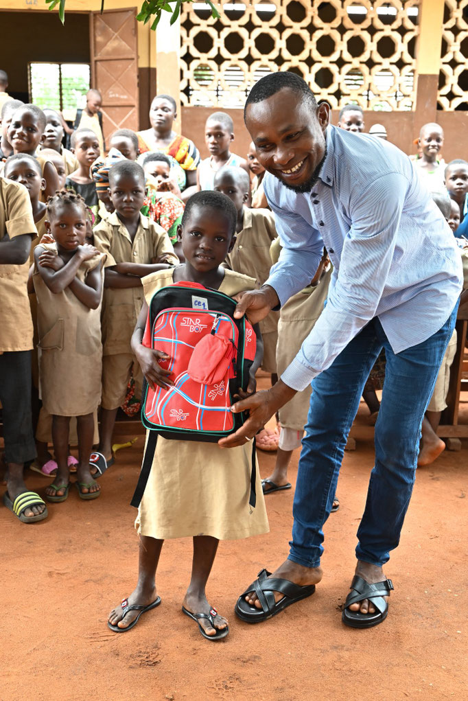 La deuxième partie de la matinée a été consacrée à la distribution de kits scolaires à 28 autres enfants des écoles élémentaires d'Agbanu. Nous les soutenons également depuis trois ans. Ils travaillent dur et certains d'entre eux feront partie des treize qui recevront lundi des fournitures scolaires, des uniformes et des cartables pour leur première année de lycée. Le district est toujours celui de Zongo, mais cette fois-ci, les livraisons se sont déroulées avec une excellente discipline et de bonnes manières. Les directeurs de cette école, beaucoup plus petite que celle de Fonsramé, ont instauré une approche plus ordonnée de toutes les démarches qui se déroulent pendant l'année scolaire.