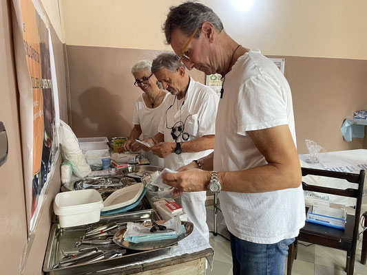 Les sentiments sont mitigés après 5 jours de travail acharné « non-stop » pour assister Guido, notre dentiste, lors des soins dentaires au Centre Hospitalier Humanitaire Segbanou. Ce qui prévaut, c'est la satisfaction d'avoir soulagé plus d'une centaine de personnes qui souffraient d'atroces douleurs dentaires et qui n'avaient pas les moyens d'aller chez le dentiste. Leur gratitude dépasse certainement nos efforts. Il est vrai aussi que travailler de 8h30 à 20h avec une brève pause pour manger un morceau laisse des traces le soir. Nous avons commencé lundi matin et en fin de journée nous étions déjà éliminés ! Mais nous avons continué avec ténacité jusqu'à ce matin où nous avons rangé, rassemblé nos affaires et aménagé l'environnement, une sorte de salle de classe plutôt vide dans laquelle nous avons placé deux lits, trois tables pour placer tous les outils, des chaises en bois ce qui n'était certainement pas le cas. aider nos dos, obligés de se pencher sur le patient dans des positions improbables et l'inévitable "unité portable" qui contient dans une sorte de chariot tous les instruments pour opérer les dents (turbines, aspirateur, micromoteur, air comprimé, eau pulvérisée, lampe à catalyseur et outil de mise à l'échelle). En réalité, nous avons essayé de limiter les interventions aux cas les plus urgents, ce qui aboutissait souvent à des extractions très laborieuses et dans la majorité des cas si compliquées qu'une intervention chirurgicale était nécessaire. Il faut reconnaître que l'expérience et le professionnalisme du Dr Guido Corradi ont été indispensables pour obtenir un résultat positif car les dents des Africains diffèrent grandement des nôtres qui sont plus petites et certainement moins tenaces. Sans parler de la profondeur des racines, très difficiles à extraire car très longues et souvent irrégulières. Pour compliquer un tableau assez complexe, la compagnie d'électricité n'a pas manqué une panne quotidienne de près de deux heures. Dans des conditions presque impossibles, nous avons continué à travailler dans l'obscurité, avec la seule aide de la lampe frontale du dentiste, pour de simples opérations d'extraction (rien d'autre n'aurait pu être fait).
