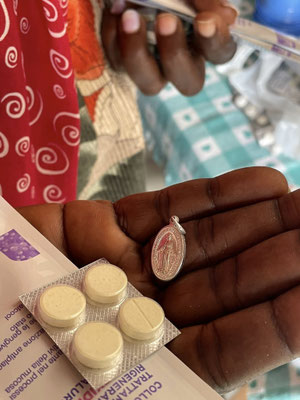 Aujourd'hui, je me sens obligé de remercier les donateurs qui ont rendu ce petit miracle possible. Nous avons trouvé le médicament générique de CellCept pour traiter la maladie auto-immune de Carole. Je me souviens que ce médicament coûte 105 € au BÉNIN (170 € en Italie !!) la boîte et ne suffit que pour 12 jours et demi de thérapie. Son salaire mensuel est loin de couvrir le coût d'une seule boîte ! Grâce aux recherches de notre ami Gianluca Iori nous avons réussi à trouver 17 boîtes pour environ 64€ qui devraient garantir environ 6 mois de thérapie. Il est vrai que le traitement devrait durer 2 ans, mais pour l'instant nous esperons une réponse positive du corps.