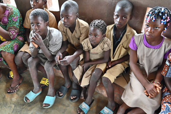 Pour y arriver, nous quittons la route goudronnée reliant Comé à Possotomé et empruntons une piste en latérite rouge qui serpente sur plusieurs kilomètres jusqu'à notre destination. Nous attendaient, assis avec diligence derrière des pupitres installés à l'extérieur, devant les bâtiments de l'école, les représentants des familles des enfants bénéficiaires, le chef du village, les enseignants et le directeur. Les enfants, tout joyeux, attendaient avec impatience. C'est une petite école. Au total, environ 150 enfants y sont scolarisés, répartis dans six classes primaires. Nous prenons immédiatement conscience de l'extrême pauvreté des habitants de la région. Beaucoup d'enfants n'ont même pas une paire de pantoufles ; certains n'ont même pas d'uniforme, et ceux qui en ont sont usés ou déchirés. Ce phénomène se produit souvent dans des villages oubliés de tous. C'est pourquoi nous avons été accueillis avec une chaleur touchante. Le directeur a prononcé un discours officiel, ainsi que des représentants de l'école et de la communauté. Le plus touchant a été celui d'une jeune fille (dont je publie la lettre originale) qui avait préparé un discours pour nous, qu'elle a lu devant tout le monde avec beaucoup d'enthousiasme et d'impatience. Elle nous a notamment informés que l'école n'avait ni eau, ni électricité, ni toilettes. C'est une situation que nous avons déjà rencontrée, notamment dans le nord, où nous avons dû construire des puits, des toilettes et des douches pour certaines écoles. Il est vrai que nous n'avons pas l'argent pour les construire actuellement, mais qui sommes-nous pour priver toute une communauté de fournitures essentielles ? L'argent viendra. Que celui qui a des oreilles pour entendre entende. Nous avons donc laissé filer la promesse… Je sais que nous réaliserons le projet tôt ou tard. Les enfants présentent les symptômes typiques d'une mauvaise hygiène. Ils se lavent peu et presque jamais au savon. Ils ne se lavent pas les mains avant de manger, et nous savons qu'ils mangent sans couverts… Ils souffrent de problèmes de peau comme les mycoses et la gale. L'éducation est essentielle, mais l'hygiène est une condition essentielle à la santé et à la cohabitation civile. Nous ne pouvons nous résoudre à négliger cet aspect. La distribution des sacs à dos s'est déroulée dans une ambiance joyeuse, presque comme si nous faisions tous partie de la même famille. Et c'est vrai dans une certaine mesure : nous faisons tous partie de la même famille, la famille humaine, celle dans laquelle chacun de nous devrait s'identifier et prendre soin les uns des autres. Nous avons toujours aimé aider les enfants qui ne peuvent pas aller à l'école faute de ressources, car nous savons que seule l'éducation leur permettra de faire leurs propres choix, de savoir ce qu'ils veulent faire, d'acquérir les compétences et l'intelligence nécessaires pour être utiles à leur pays, dans leur pays, comme il se doit.