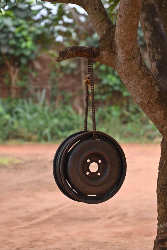 Fabriqué à partir d'une vieille jante rouillée, il remplit bien son rôle. La structure est simple mais