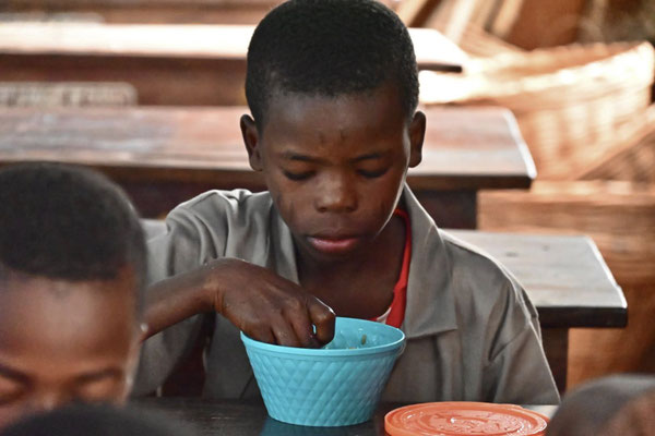 Abbiamo iniziato il servizio di “mensa” per una trentina di bambini che non hanno nemmeno l’equivalente di 20 centesimi per fare merenda. Non possiamo permettere che mentre gli altri mangiano, questi stanno a guardare.